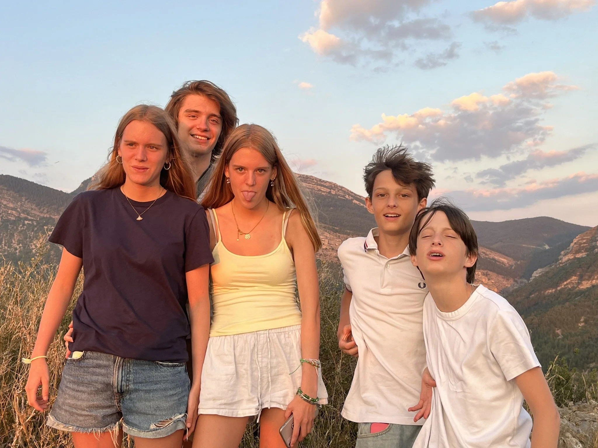 entourés de leurs enfants Elie, Tom, Pauline, Emilienne et Léo,